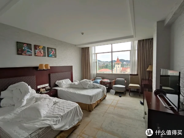 窗外的风景不错,房间也整洁,酒店后面有温泉区,可以不限时随便泡。我晚上没睡好就没去。老婆孩子去了也没拍照,听他们说没多大地方,水池很少,有一些还没开,反正就是锅炉温泉。