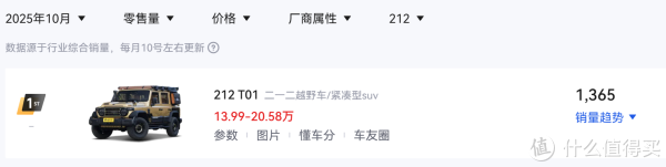 212 T01最近几个月的销量都是一千多辆,在硬派越野车中并不算很亮眼的成绩。