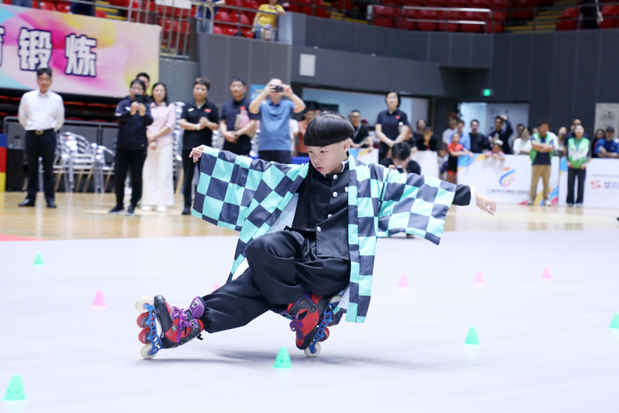 开幕式上,2019年世界轮滑锦标赛花式绕桩冠军、国家级运动健将陈楚尧,2024年上海市自由式轮滑锦标赛花式绕桩冠军胡途,2025年全国少年轮滑锦标赛速度过桩冠军金书尧,以及上海本土轮滑高手陈凯琪和周妤霏携手助阵,精彩的表演让观众们近距离欣赏了视觉与激情兼具的轮滑盛宴。
