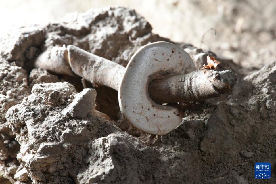 这是2021年拍摄的黑龙江饶河小南山遗址一处玉器出土现场,树根自然生长在一块玉玦的孔中(资料照片)。新华社记者 谢剑飞 摄